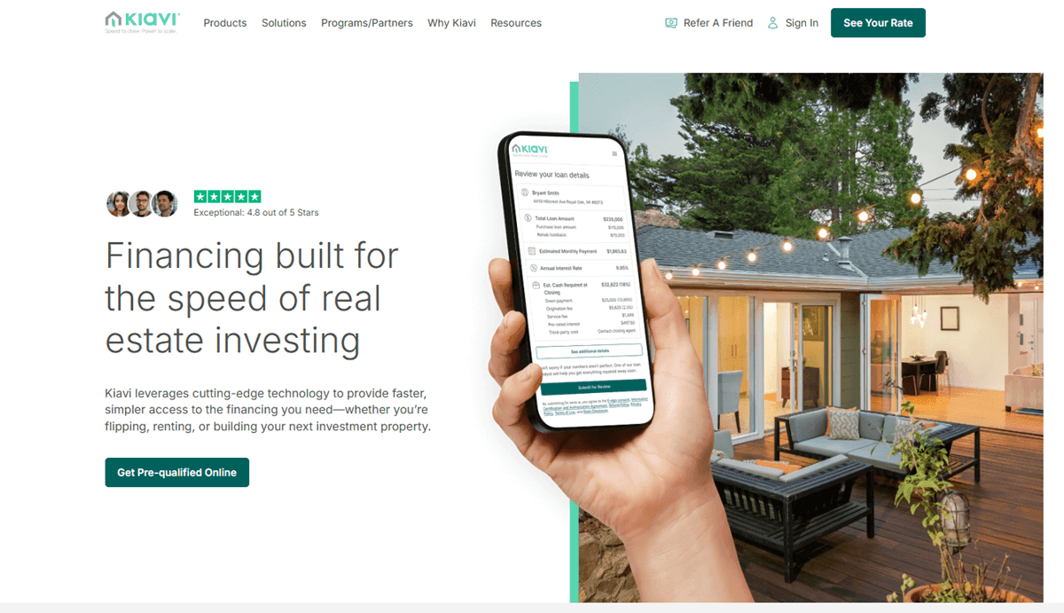 Formerly known as LendingHome, Kiavi is a powerhouse for the modern investor who loves technology. If you hate printing, scanning, and faxing documents, Kiavi is your best friend. They utilize AI and machine learning to speed up the appraisal and underwriting process significantly.