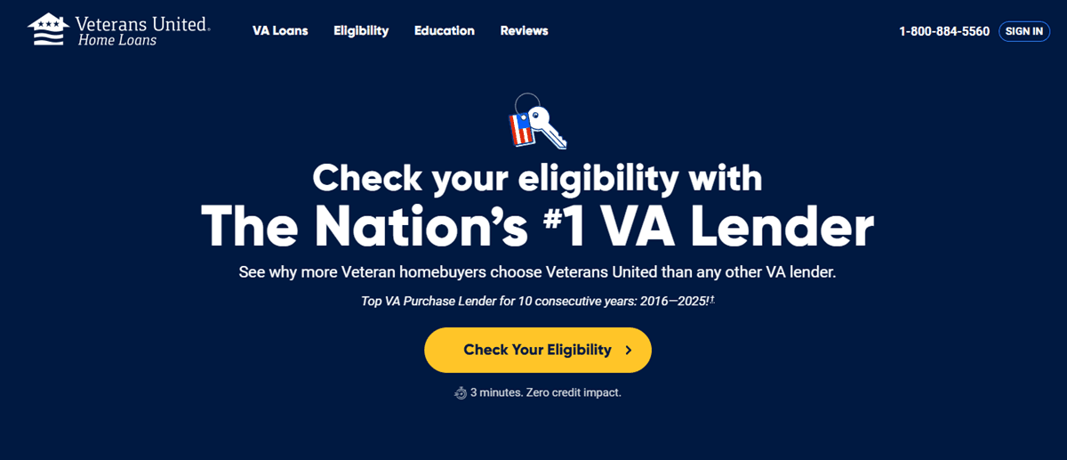 If you have served in the military, you should absolutely be using your VA loan benefits. I can say without a doubt that Veterans United is the gold standard here. They are the nation's largest VA purchase lender and focus almost exclusively on helping service members.