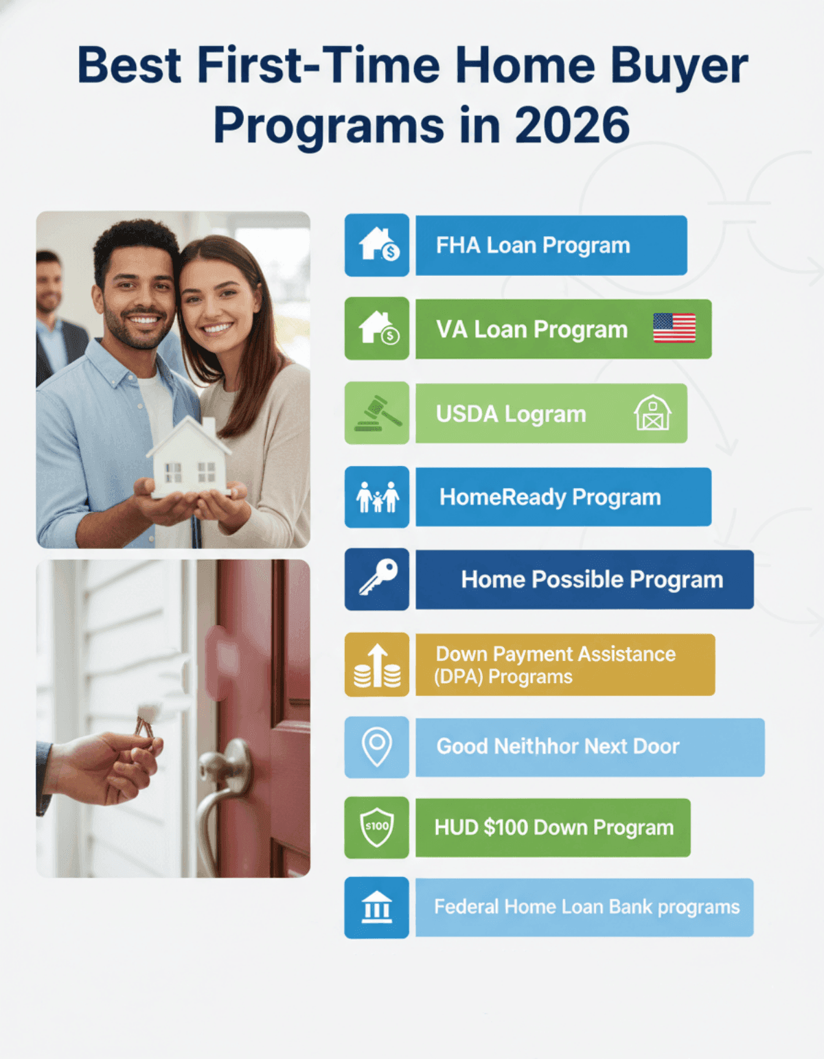 Closing on your first home is one of the most stressful yet rewarding things you'll ever do. In the 2026 market, the "old" advice of saving 20% is mostly dead. The new strategy is about leveraging these programs to get in early and let home appreciation build your wealth for you. Whether it's an FHA loan for a fixer-upper or a USDA loan for a suburban sanctuary, there is almost certainly a path that fits your budget.