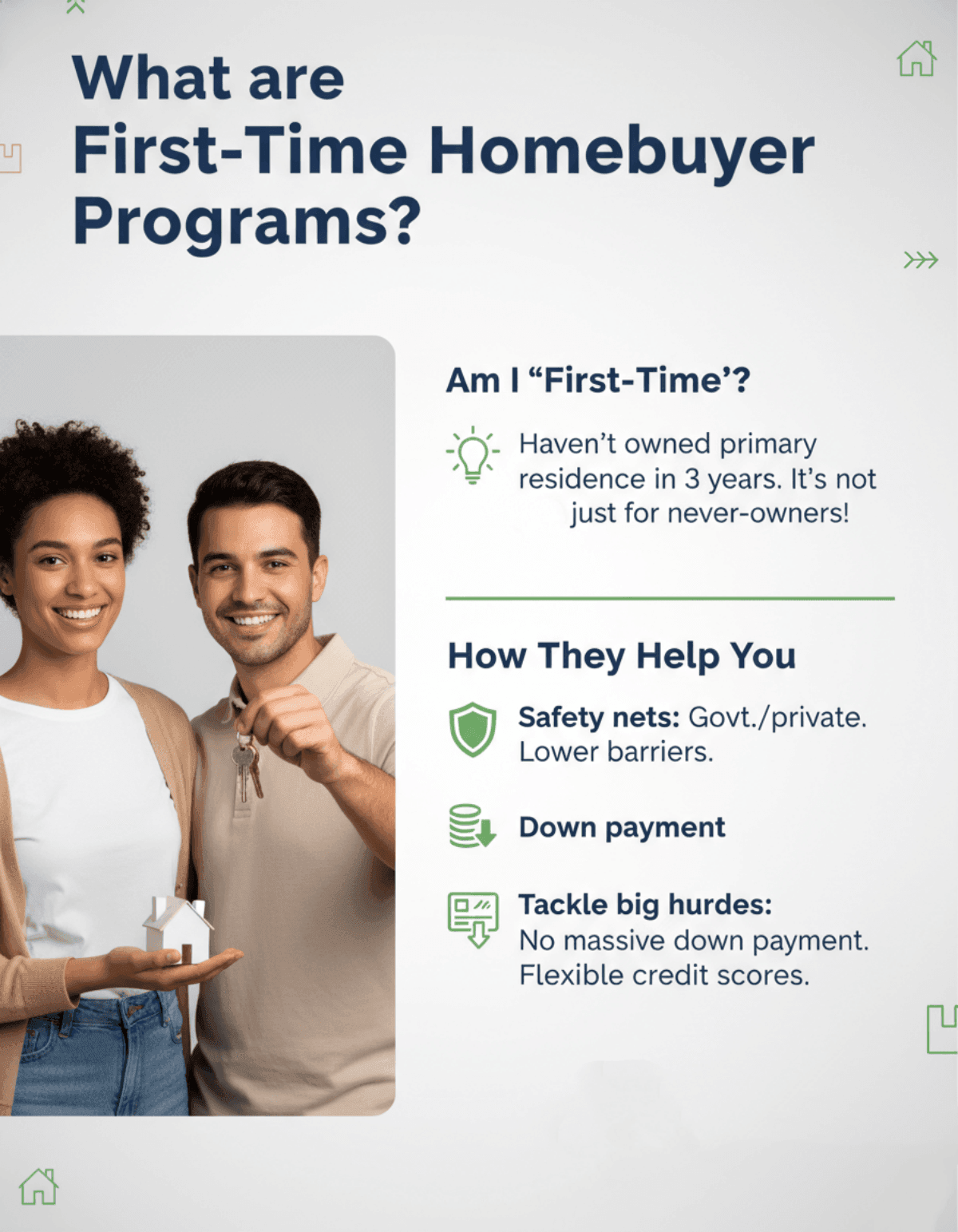 Most people assume "first-time" means you've never owned a single brick in your life. But here's a professional secret: you usually qualify if you haven't owned your primary residence in the last three years. These programs are essentially "safety nets" created by the government or private lenders to lower the barrier to entry. They tackle the two biggest ghosts that haunt renters: the massive down payment and the "perfect" credit score requirement.
