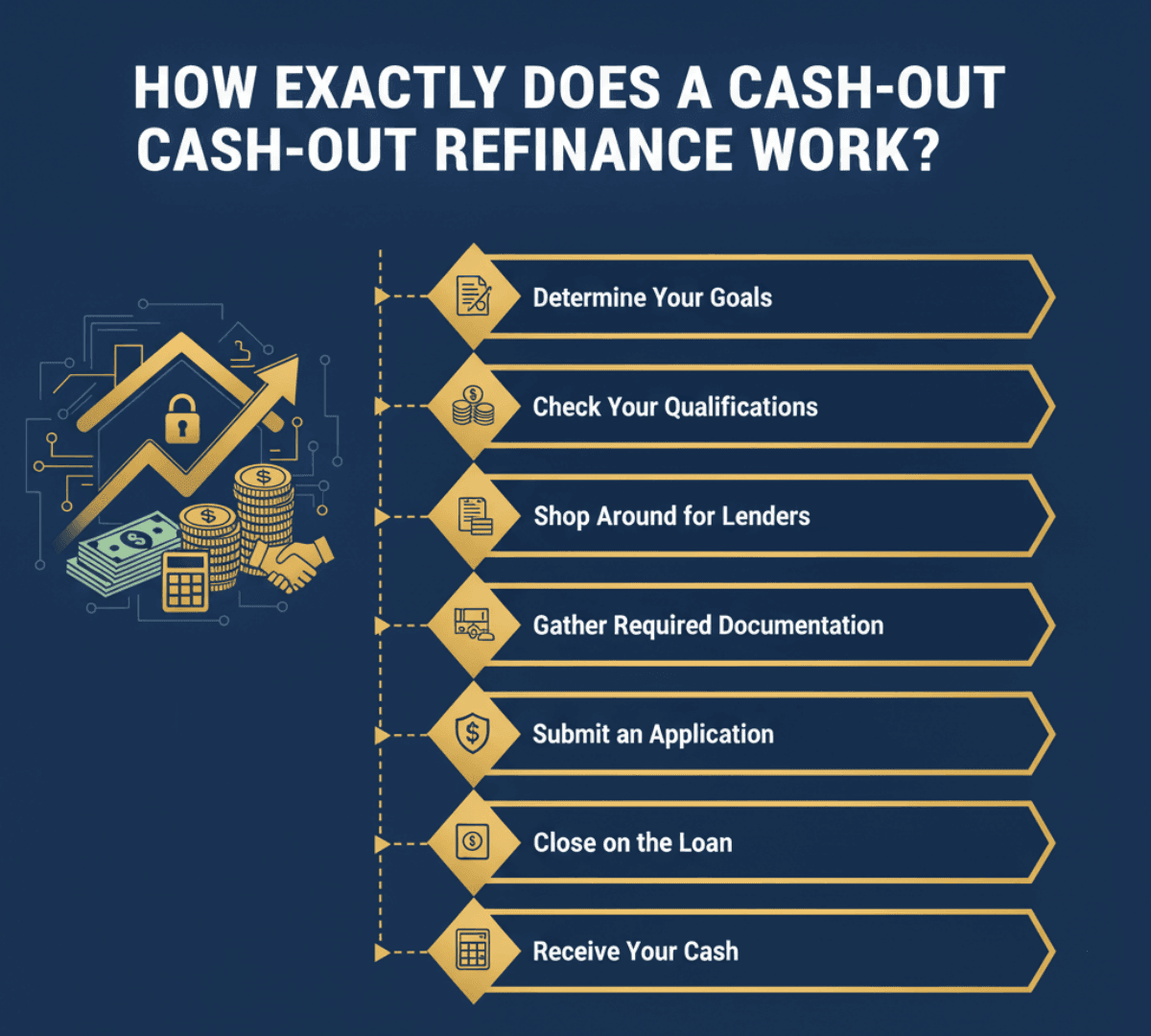 Now, let's wrap up the process with 7 steps and see how a cash-out refinance exacly work.