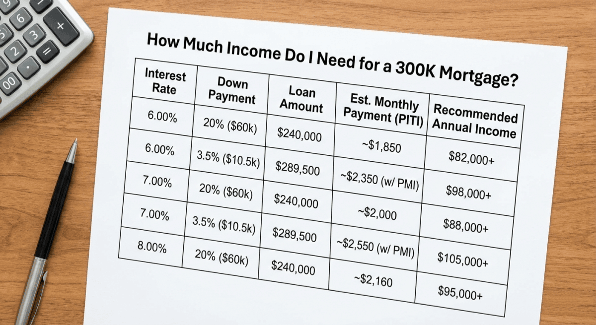 Buying a 300,000 home is an achievable goal for many Americans, usually requiring a household income between $85,000 and $105,000, depending on your debt and down payment. But remember, "qualifying" for a loan and "affording" a life are two different things. You want a mortgage that fits your budget, not one that eats it.