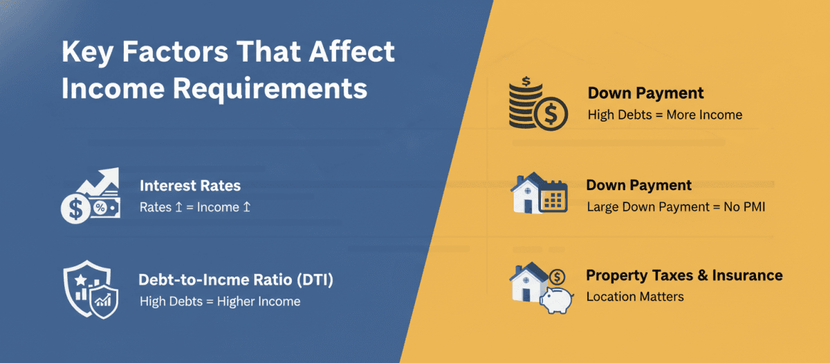 Credit Score: A score below 680 usually means a higher interest rate, which increases the monthly payment, which in turn demands higher income. It's a domino effect.