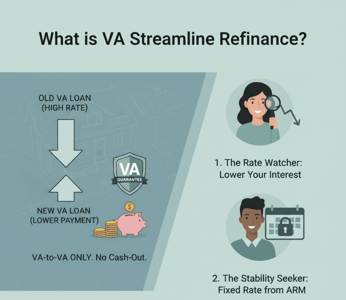 At its core, a VA Streamline Refinance is a "refinance-to-refinance" program designed exclusively for homeowners who already have a VA loan. You cannot use this program if you currently have an FHA or Conventional loan. It is strictly VA-to-VA.
