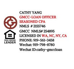 I speak English and MandarinLive in WA and NC, familiar with WA and NC MarketWechat: cathy-gmccloanApply with Me: https://www.gmccloan.com/CathyYang.html
